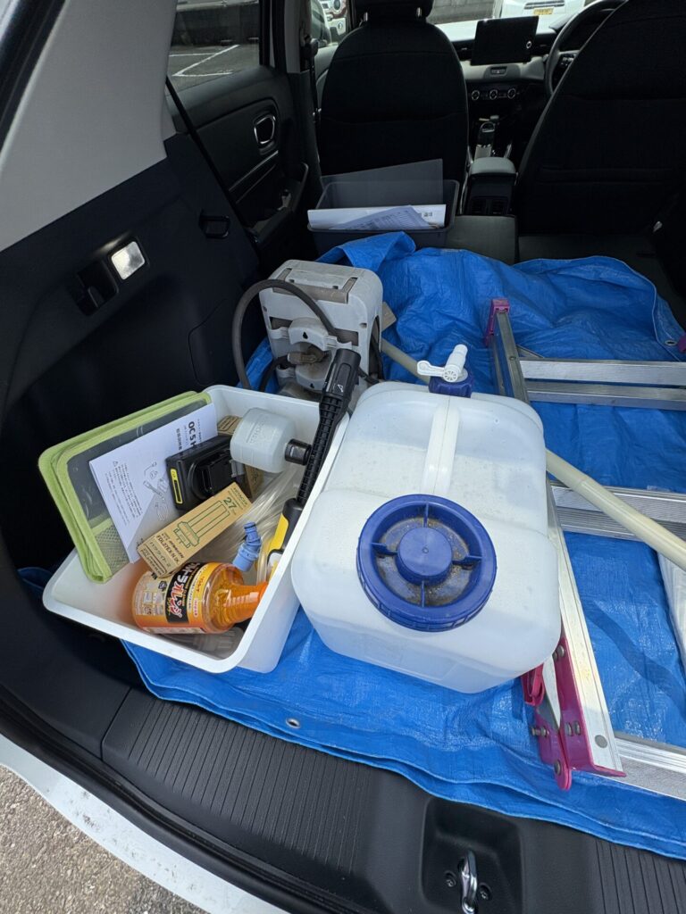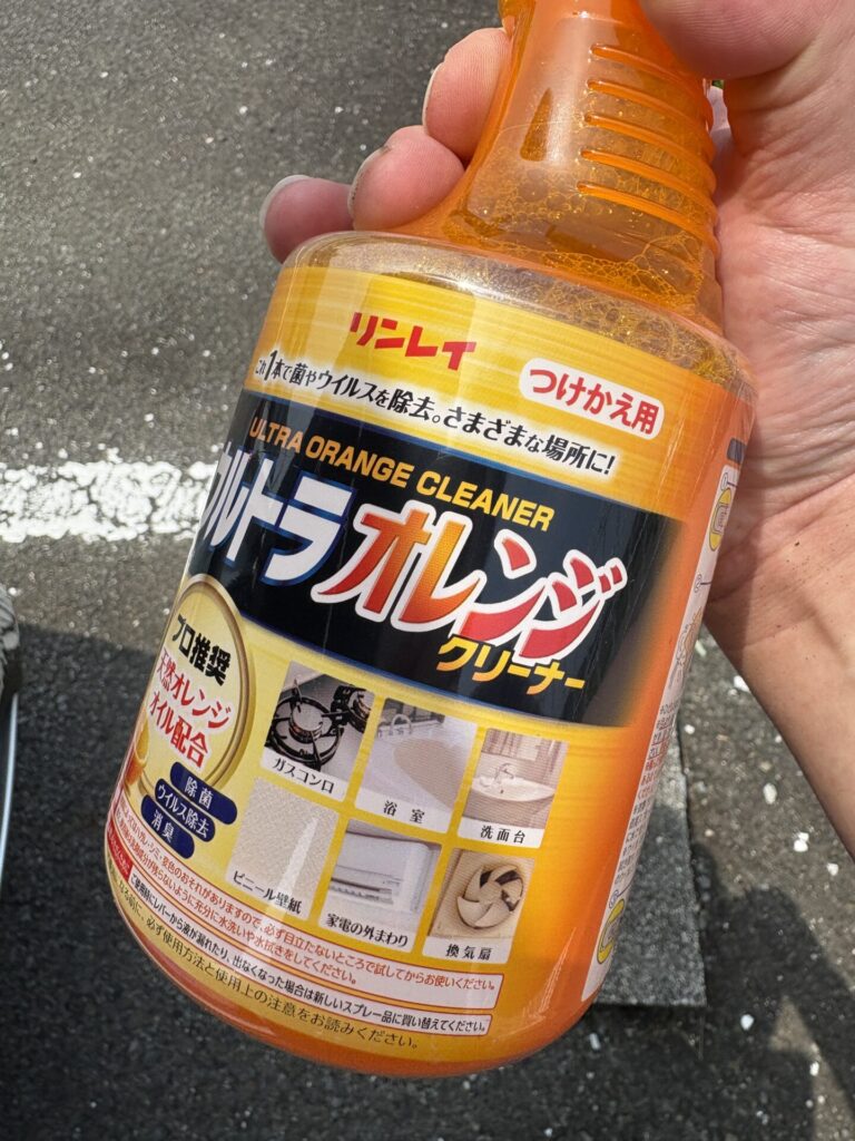 ウルトラオレンジを高圧洗浄機の専用タンクに入れて噴霧。