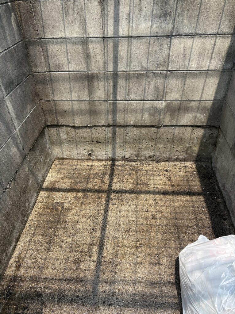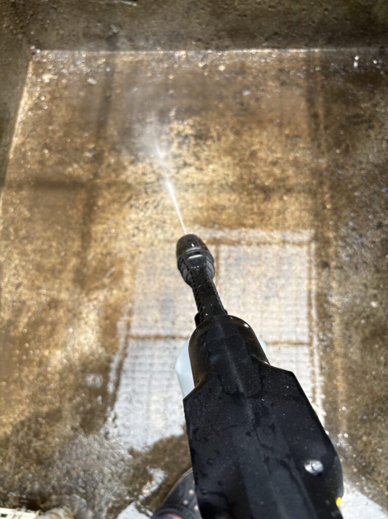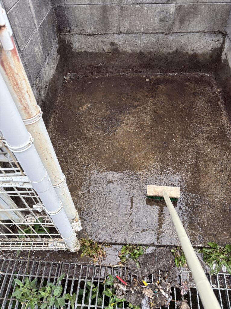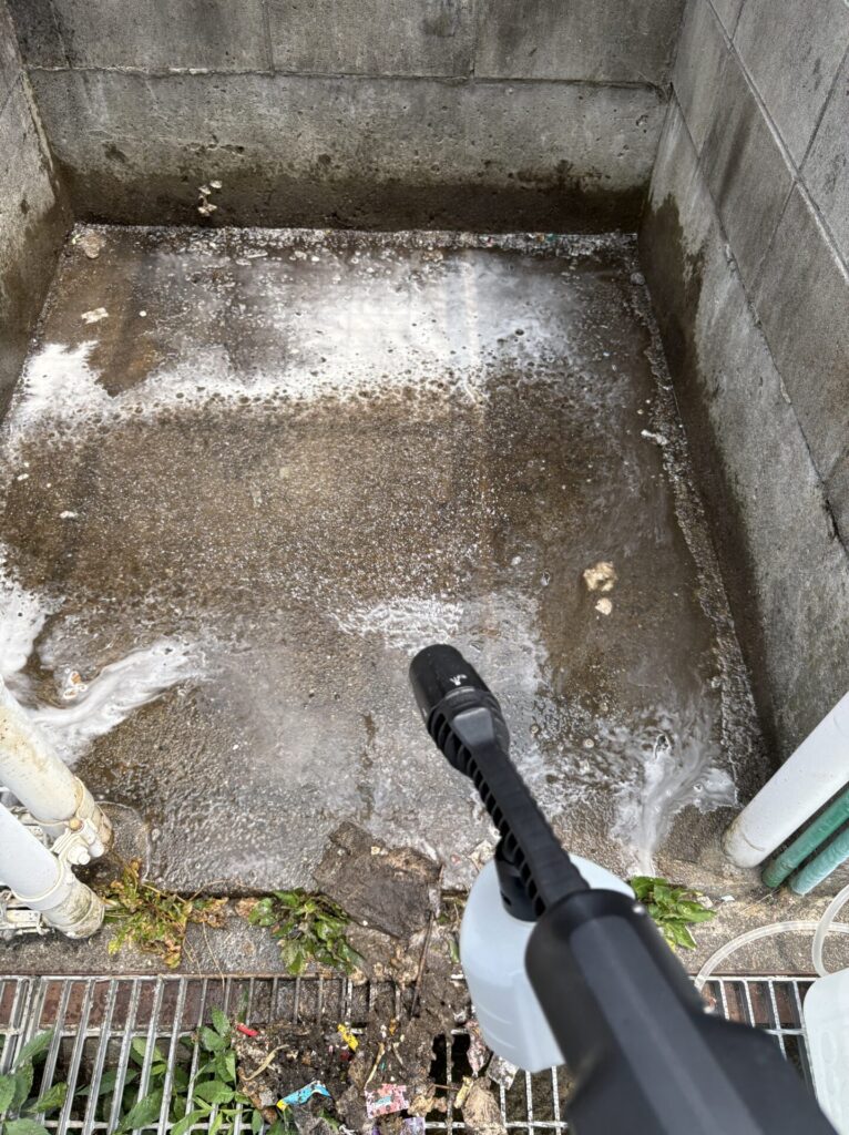 ブラシでもこすってみましたが、高圧洗浄機のパワーが圧勝でした。