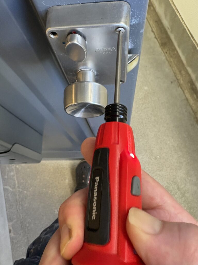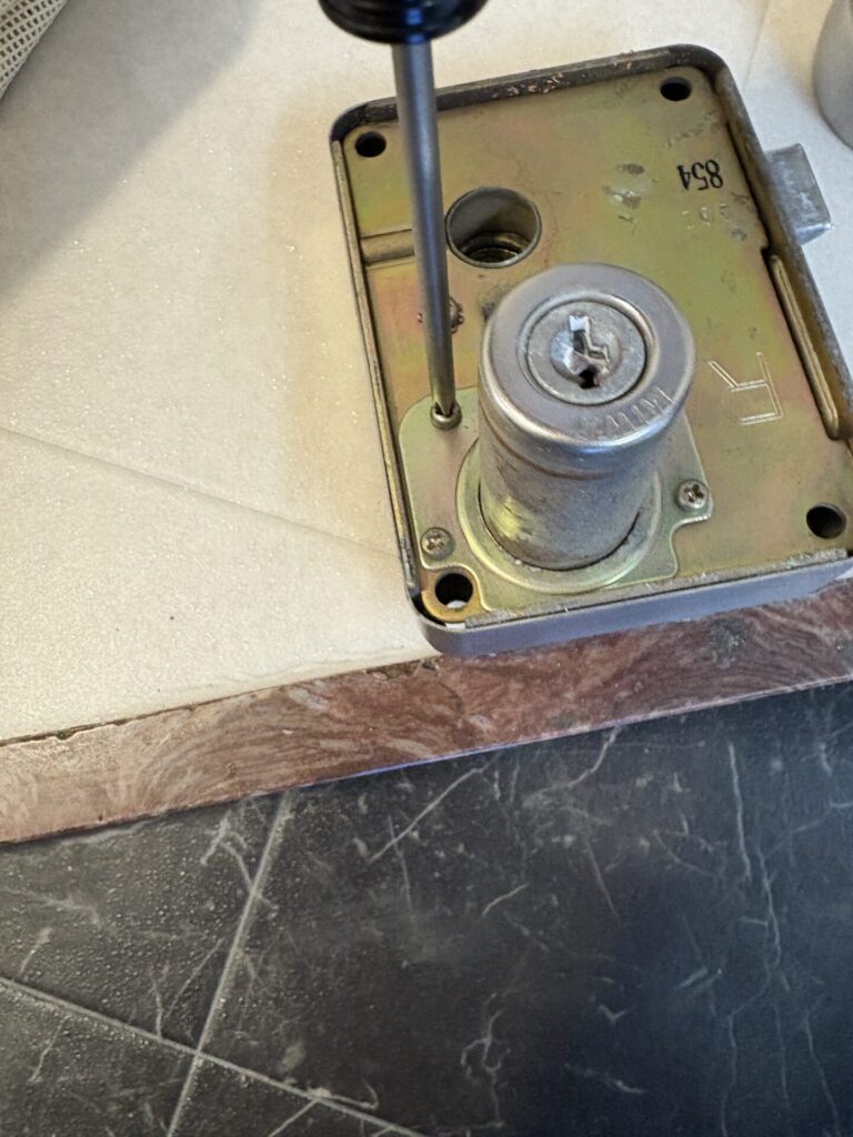 シリンダー交換後は付属の新しいネジに取り換えて作業完了。