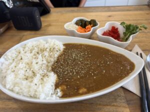 基本お昼の営業で、メニューは、牛スジカレーや野菜ベースのカレー・ピクルス
